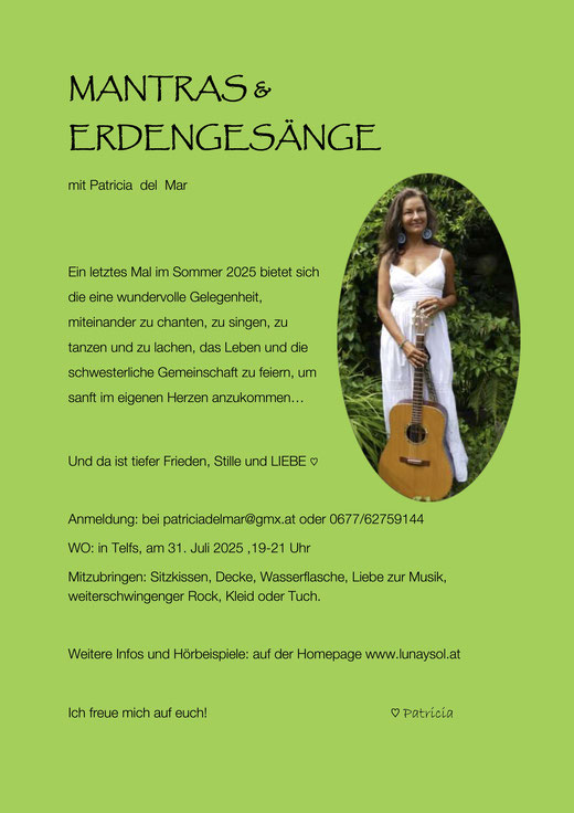 Weitere Infos findet ihr unter: www.lunaysol.at oder bei patriciadelmar@kristallsängerin