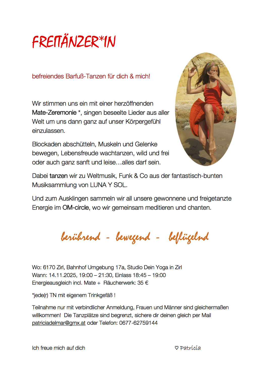 unsere erste FREITÄNZER*IN findet am 14.11.2025 in Zirl statt